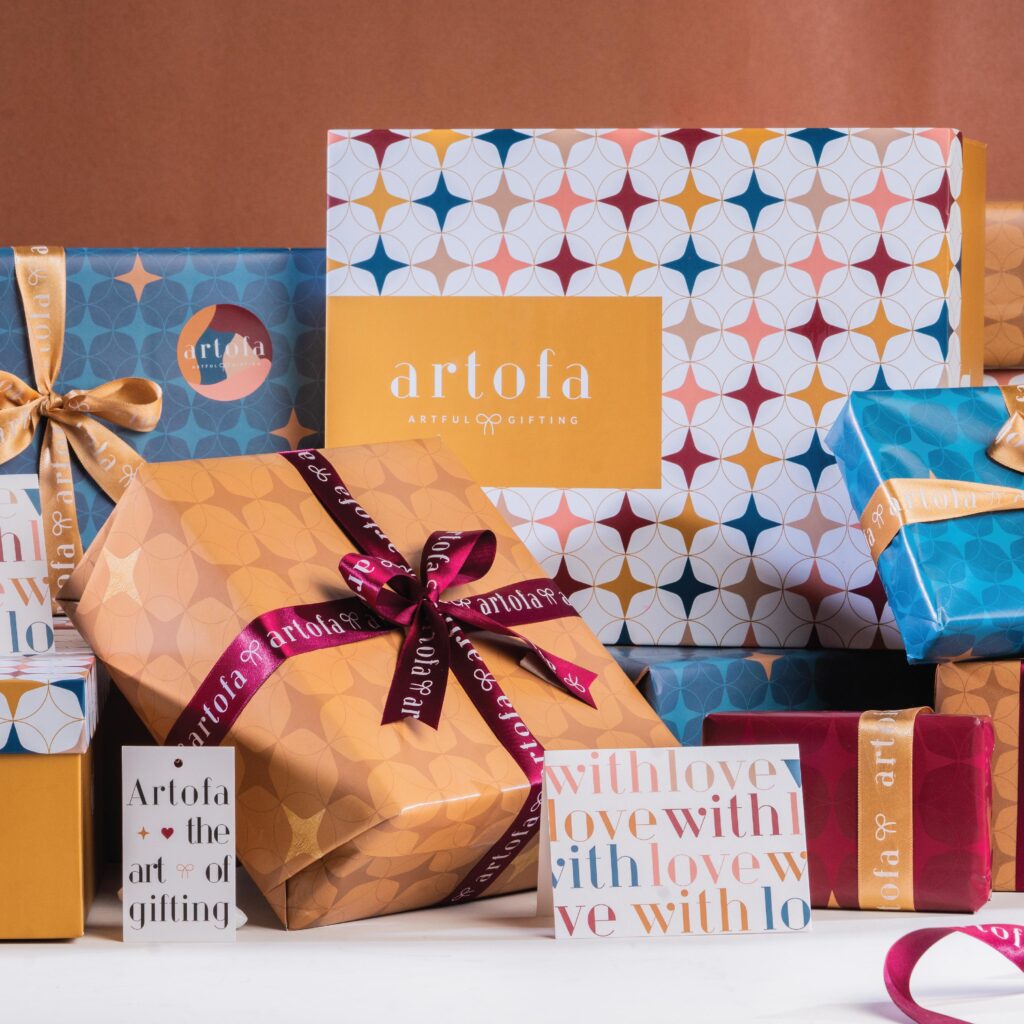 Luxe, Thoughtful & Modern Gifting 🎁Gifts | Registry | Curated Hampers Gifting can be an intimidating task for many, especially in today's world where we're bombarded with options. Artofa's goal was to build a platform where gifting was a fun but organised task. The visuals are festive and our diverse colour palette makes sure it works for all occasions. For the website we have created a carefully designed system, categorising occasions and emotions to help users navigate the products in a productive fashion. The graphics have been kept friendly and approachable because it needs to accommodate a number of diverse categories. The packaging, aimed at gifting, needed to be an experience from start to finish- the wrapping paper, ribbons, box, tags and note cards are all an integral part of this experience. Instagram: @giftartofa Website: www.artofa.in