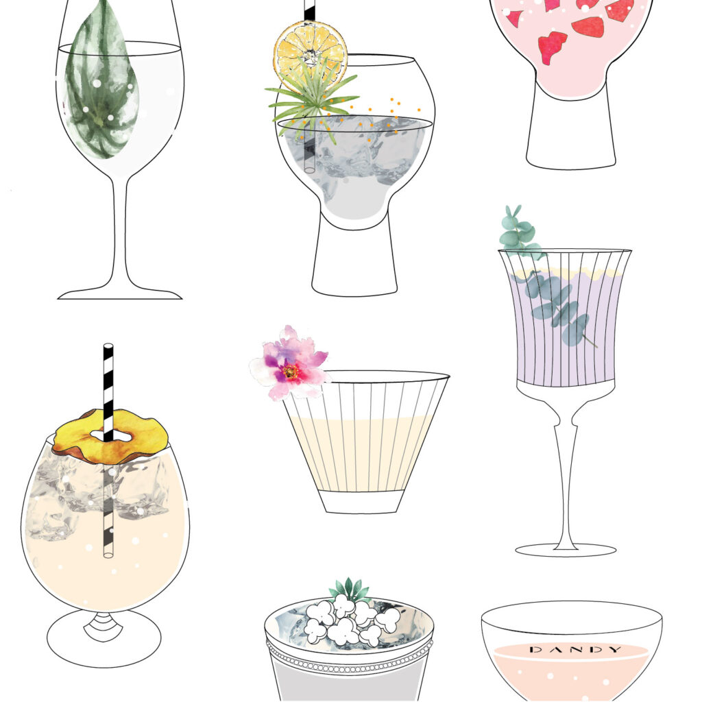 A young, trendy cocktail bar inside the famous Fio Restaurant. The bar was conceptualised for a younger crowd that could have it's own little party away from the families at the restaurant. The brief was to keep it dapper and sharp to exude a night-cap vibe. We created a clean, stencilled type for the logo, set against a dark tone on tone check, reminiscent of stylish menswear designs. Since the cocktails were the prime focus at the bar all the Dandy Specials were custom illustrated, keeping the straight lines to show the form and adding colourful elements to recreate the vibrancy of the cocktails. Instagram: @dandyfiobar